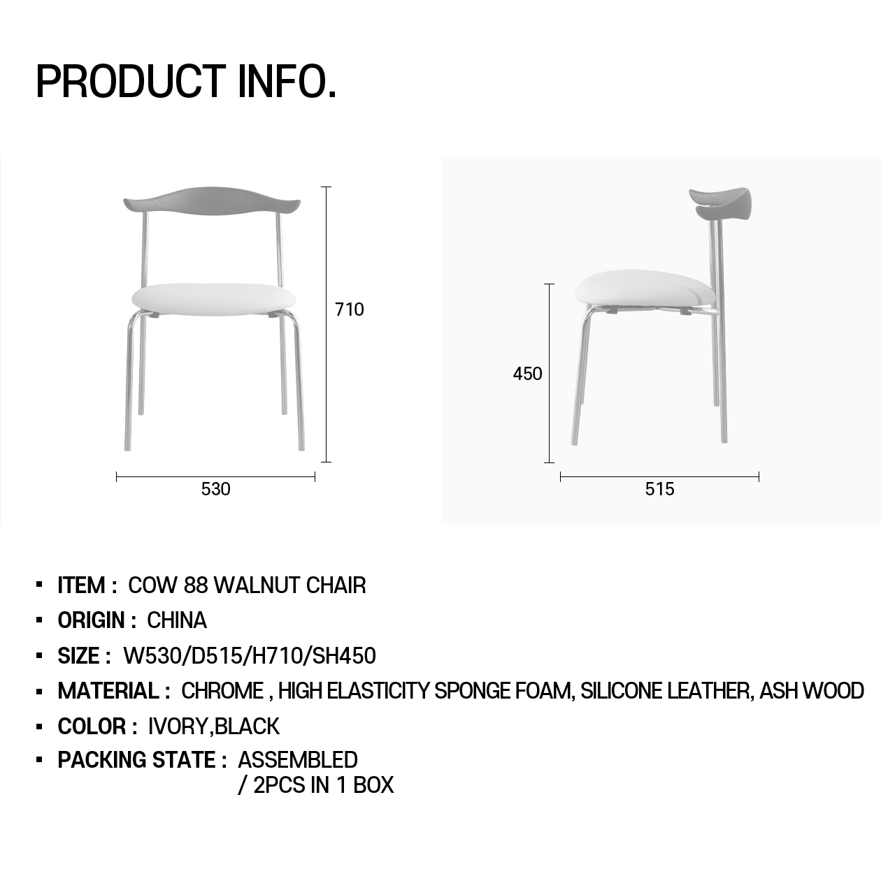 재질고탄력 스펀지폼 / PU가죽 / 스틸(크롬도금) / 애쉬우드