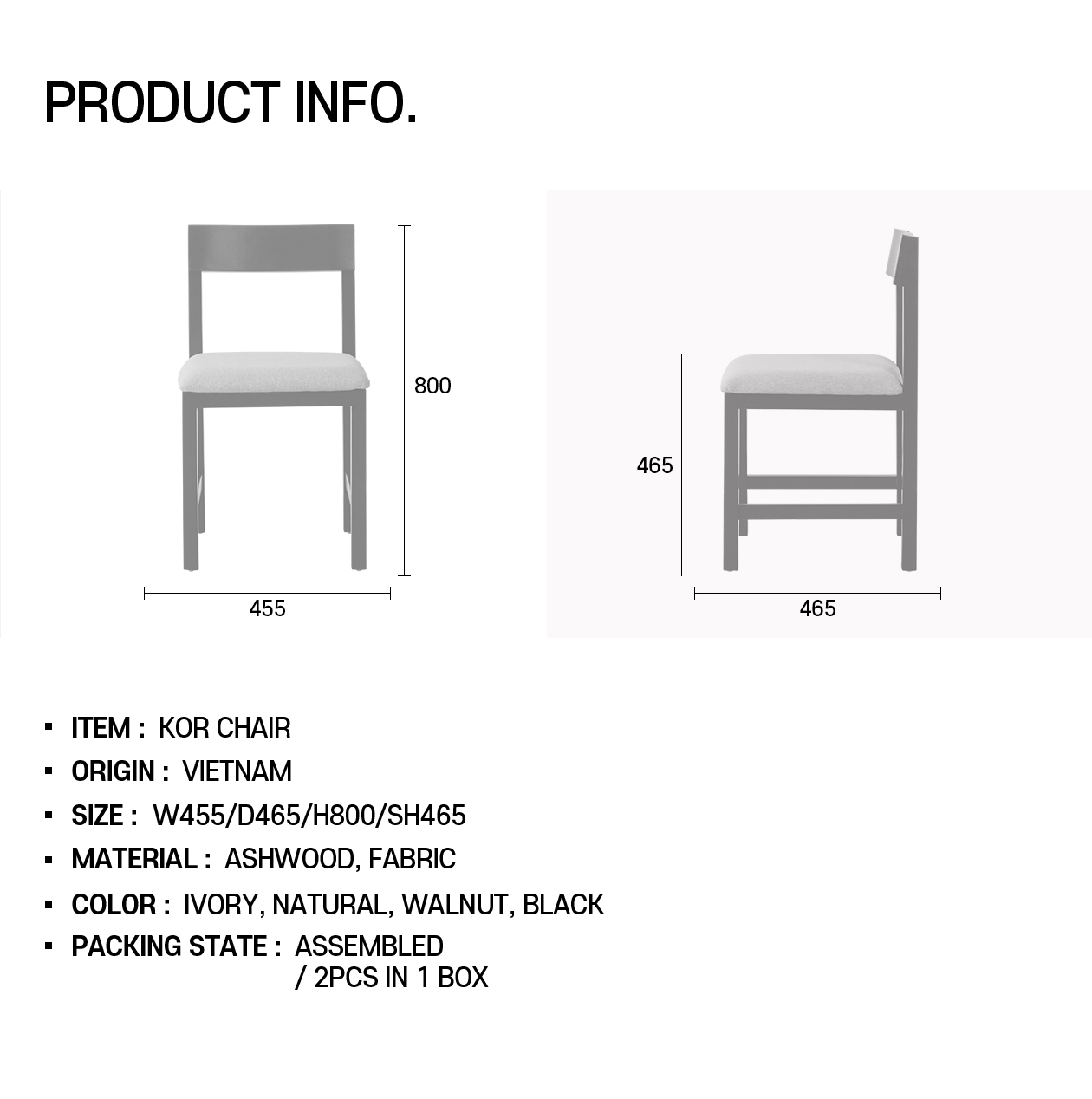 사이즈W455 / D465 / H800 / SH465 (mm)