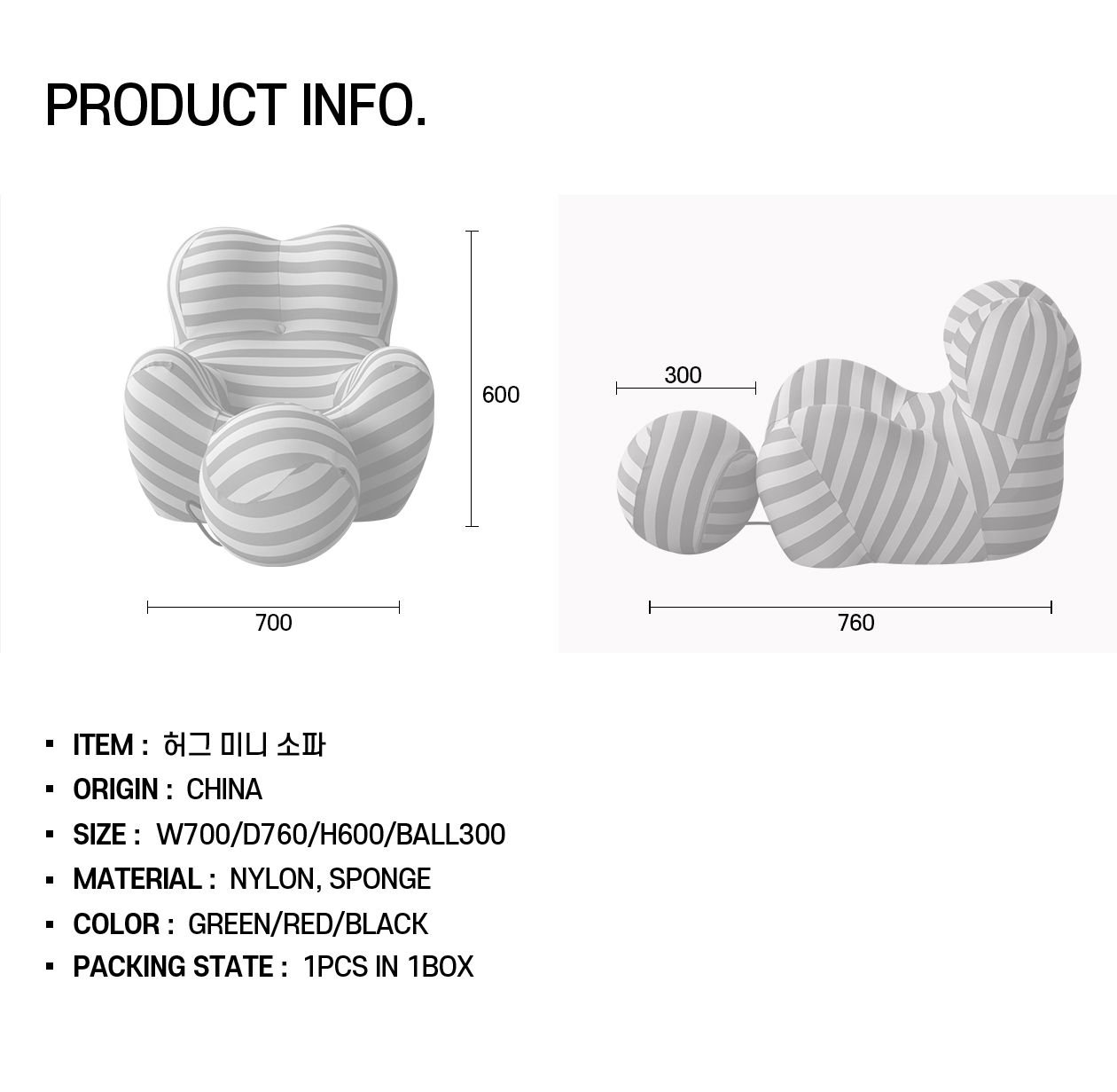 사이즈W 700 / D 760 / H 600 / BALL300 (mm)
