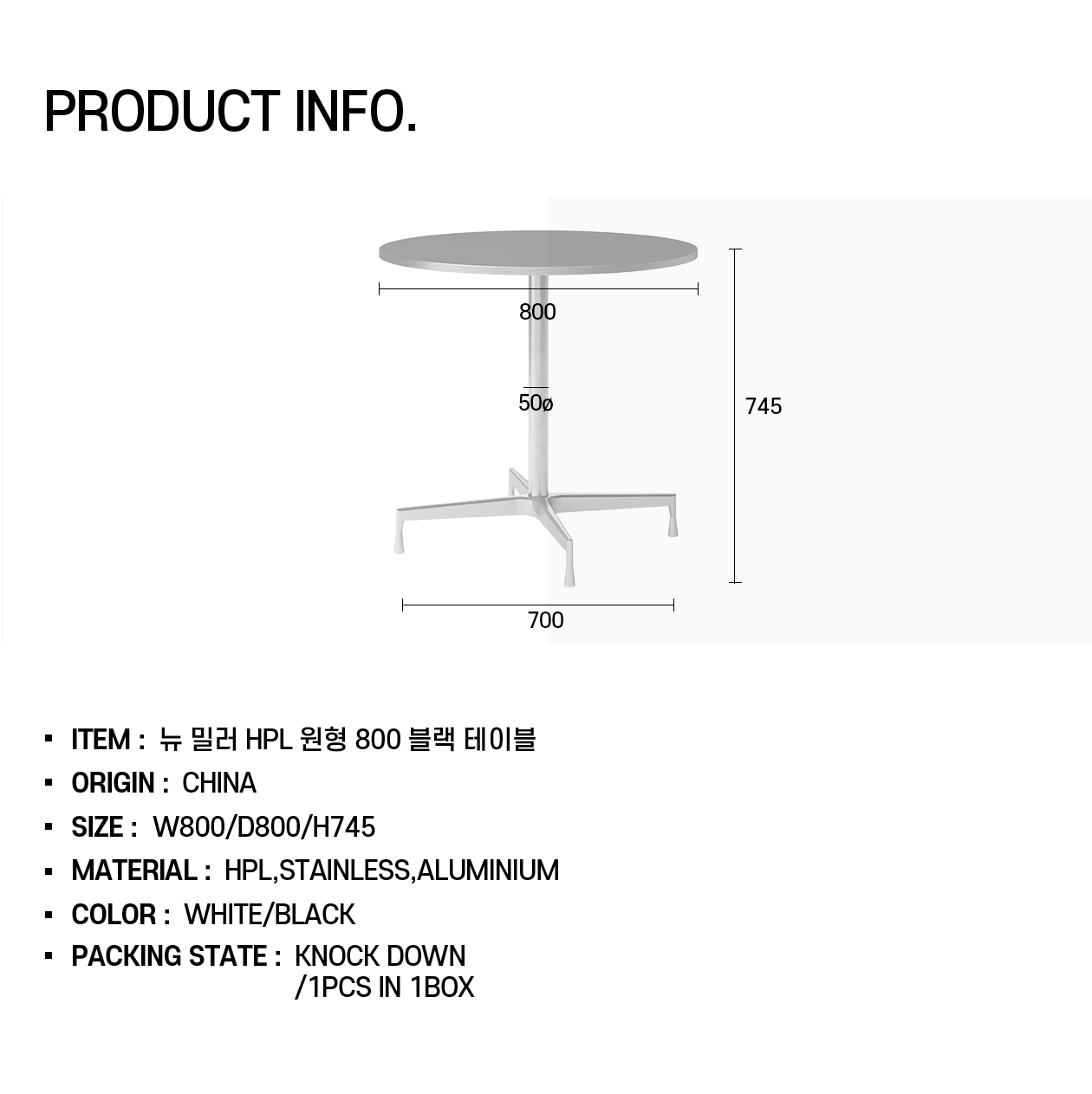 실버 엣지 테이블 800 원형 (new 밀러 프레임)-블랙