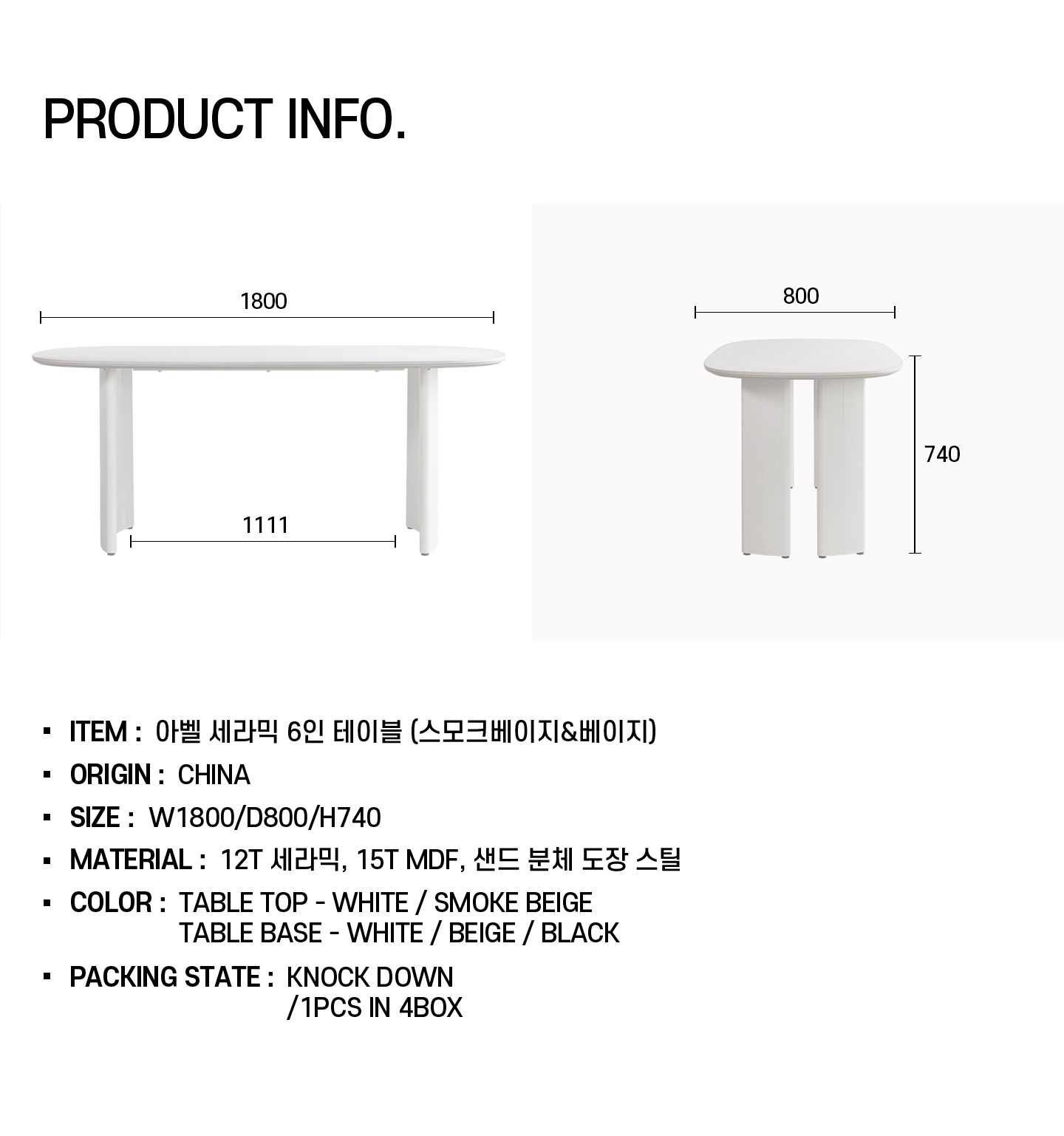 아벨 테이블 1800-스모크베이지/베이지