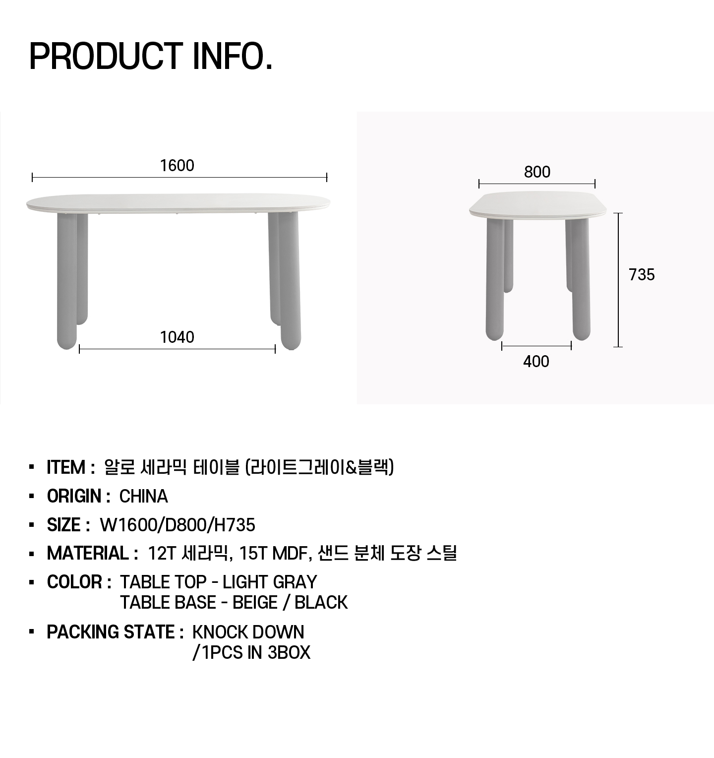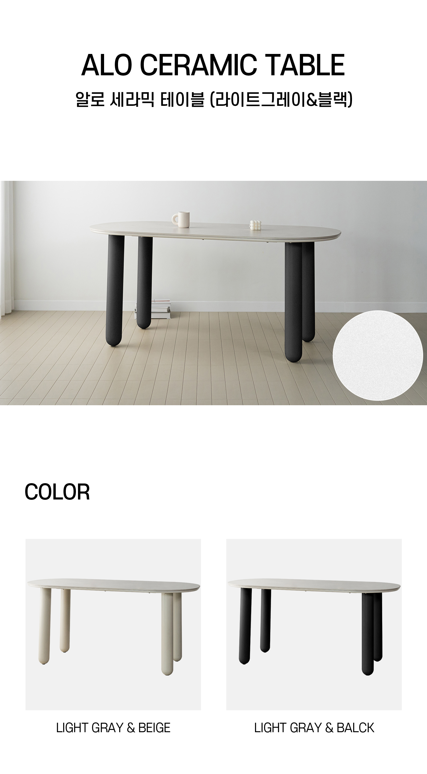 알로 테이블 1600-라이트그레이 / 블랙