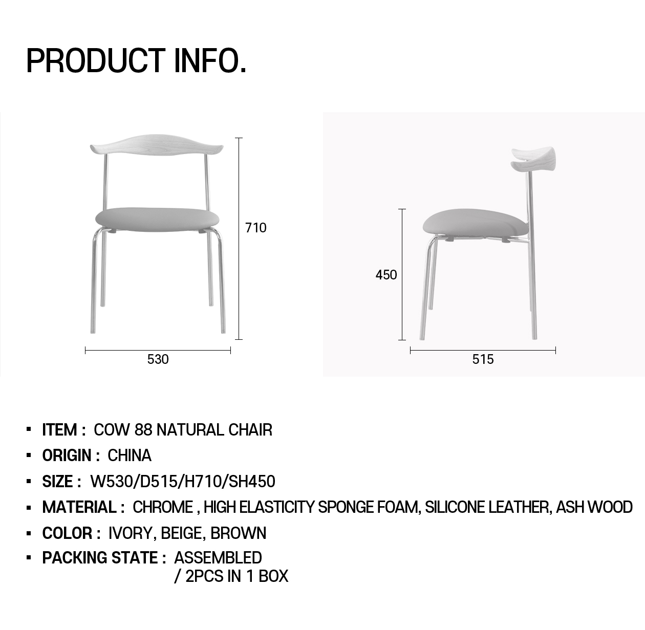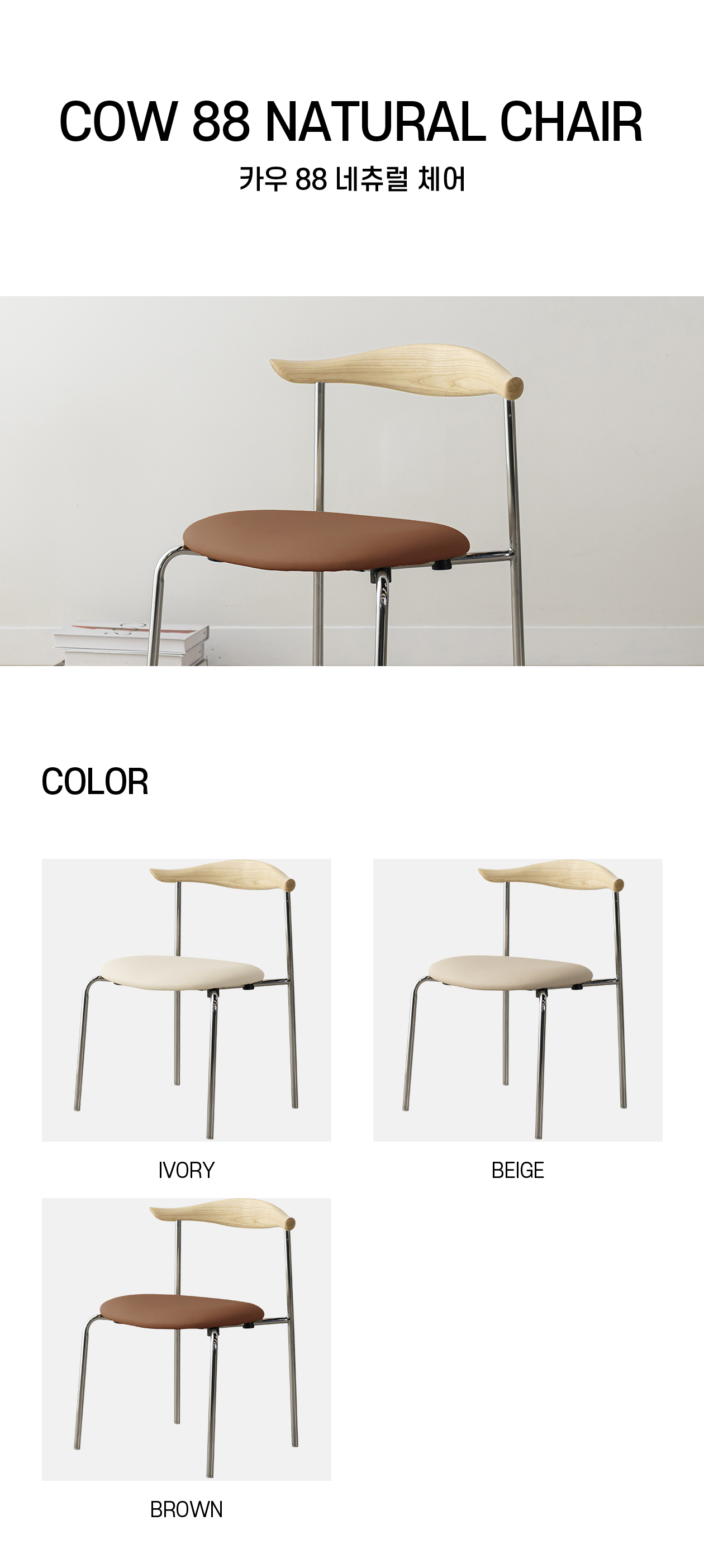 재질고탄력 스펀지폼 / PU가죽 / 스틸(크롬도금) / 애쉬우드