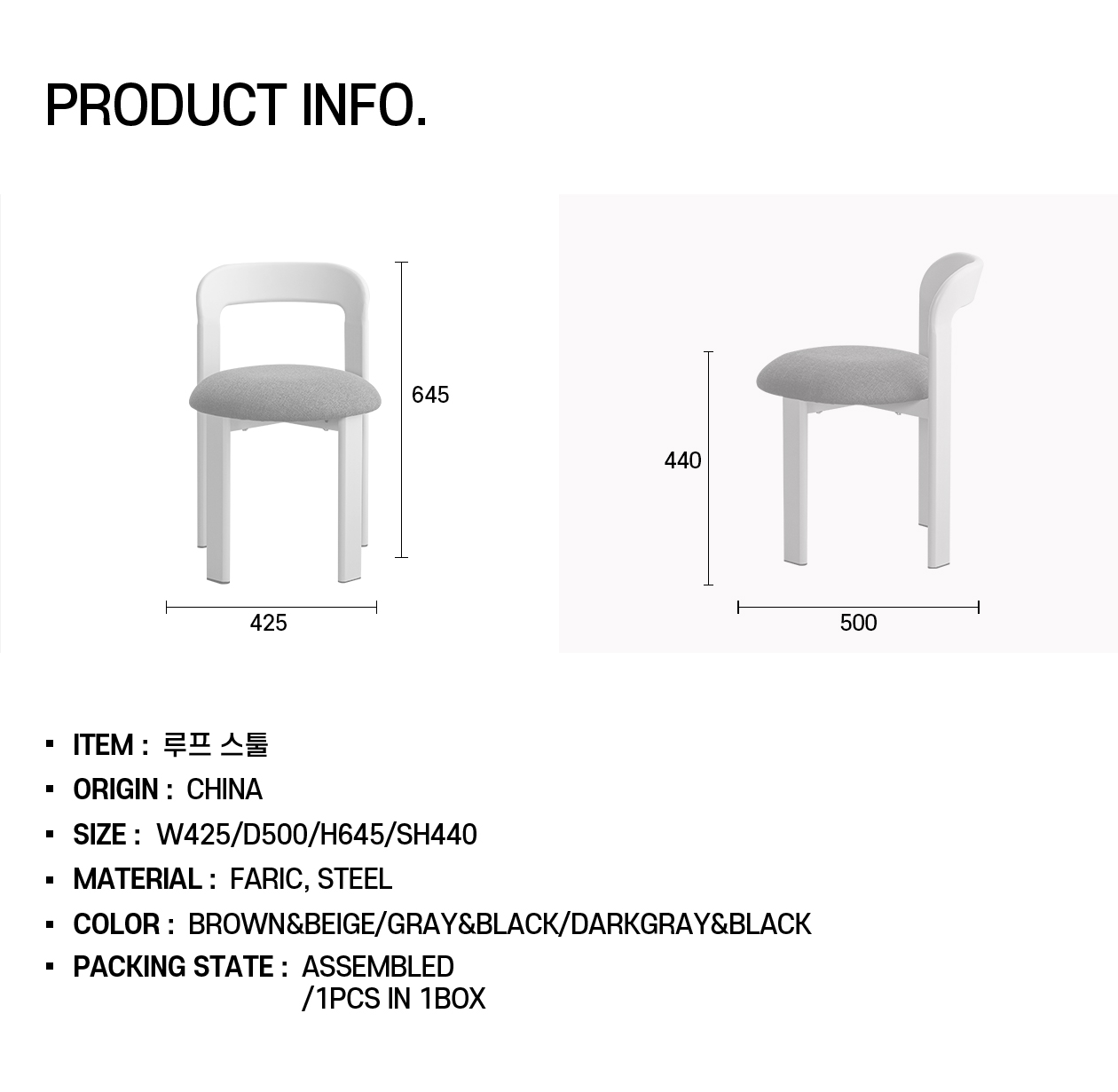 사이즈W425 / D500 / H645 / SH440 (mm)