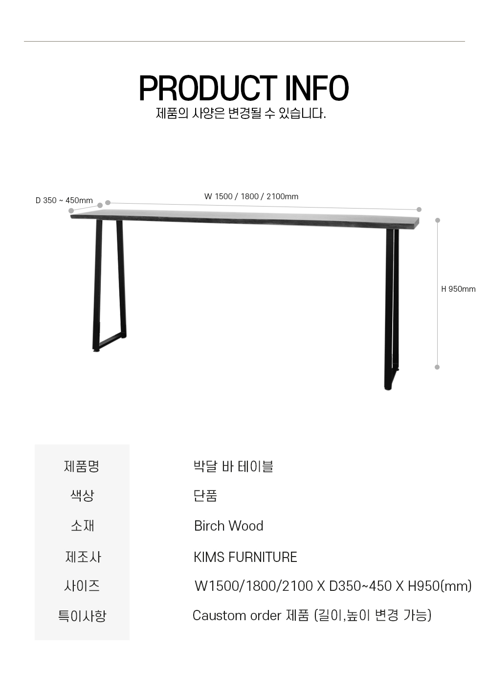 사이즈1500 / 1800 / 2100mm (W)  X 350~450mm (D)  X  950mm